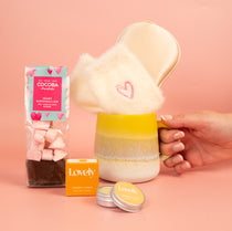 Send a splash of sunshine straight to their door with our Yellow Hug In A Mug Gift Set! Carefully curated to deliver a joyful, cosy moment or two, your recipient will be over the moon to discover the treats awaiting them as part of this sumptuous gift set. In fact, we expect they’ll be relaxing with that Mojave Glaze Yellow Mug in hand and Cream Heart Cosy Socks on within moments of opening it!