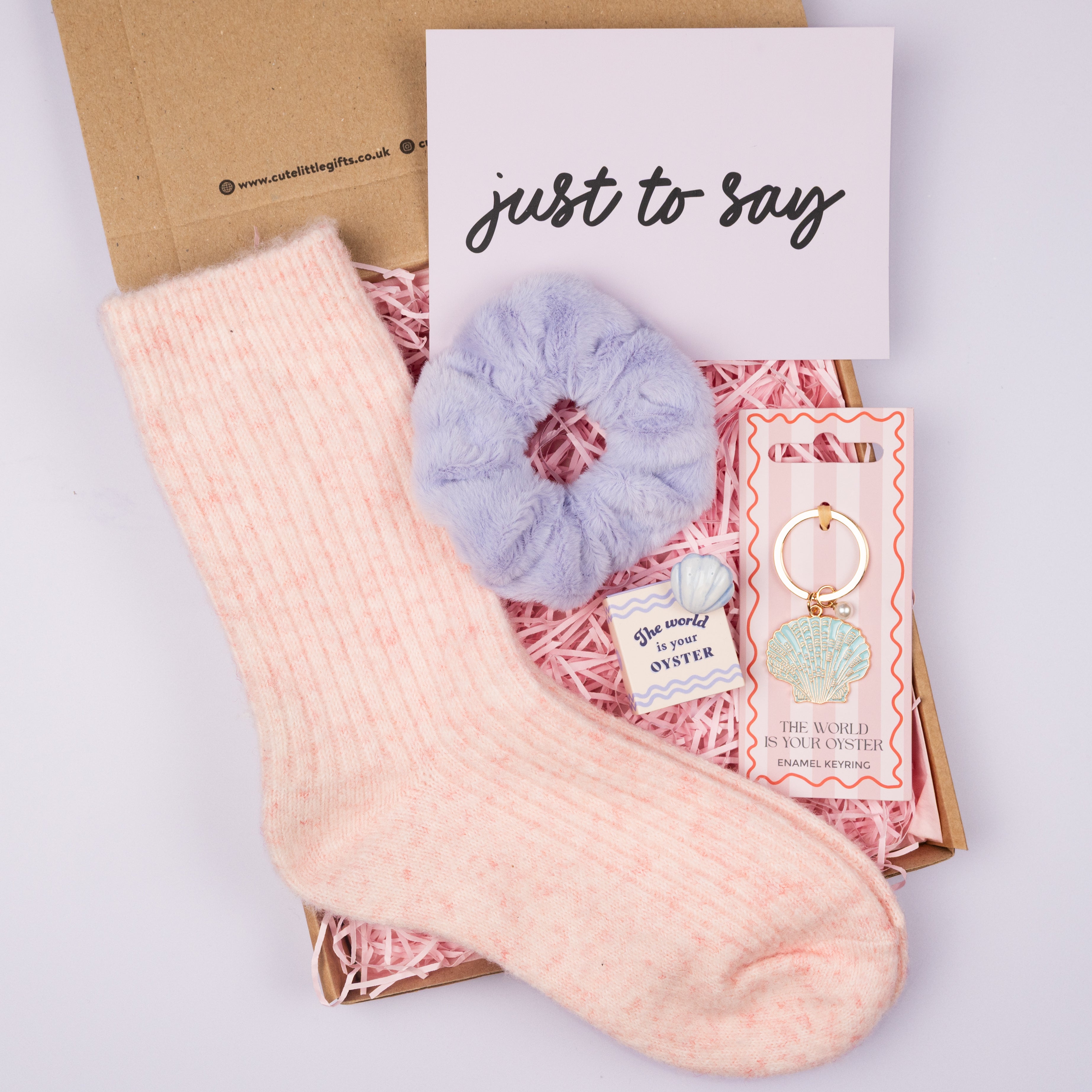 Each gift is beautifully presented and comes with a handwritten note, so your message truly feels like it was written just for them. From little touches of luxury to charming keepsakes, every item has been chosen to spark joy and make the recipient feel special. Soft textures, delicate accents, and whimsical details create a sense of comfort and fun, turning an ordinary day into a moment worth remembering.