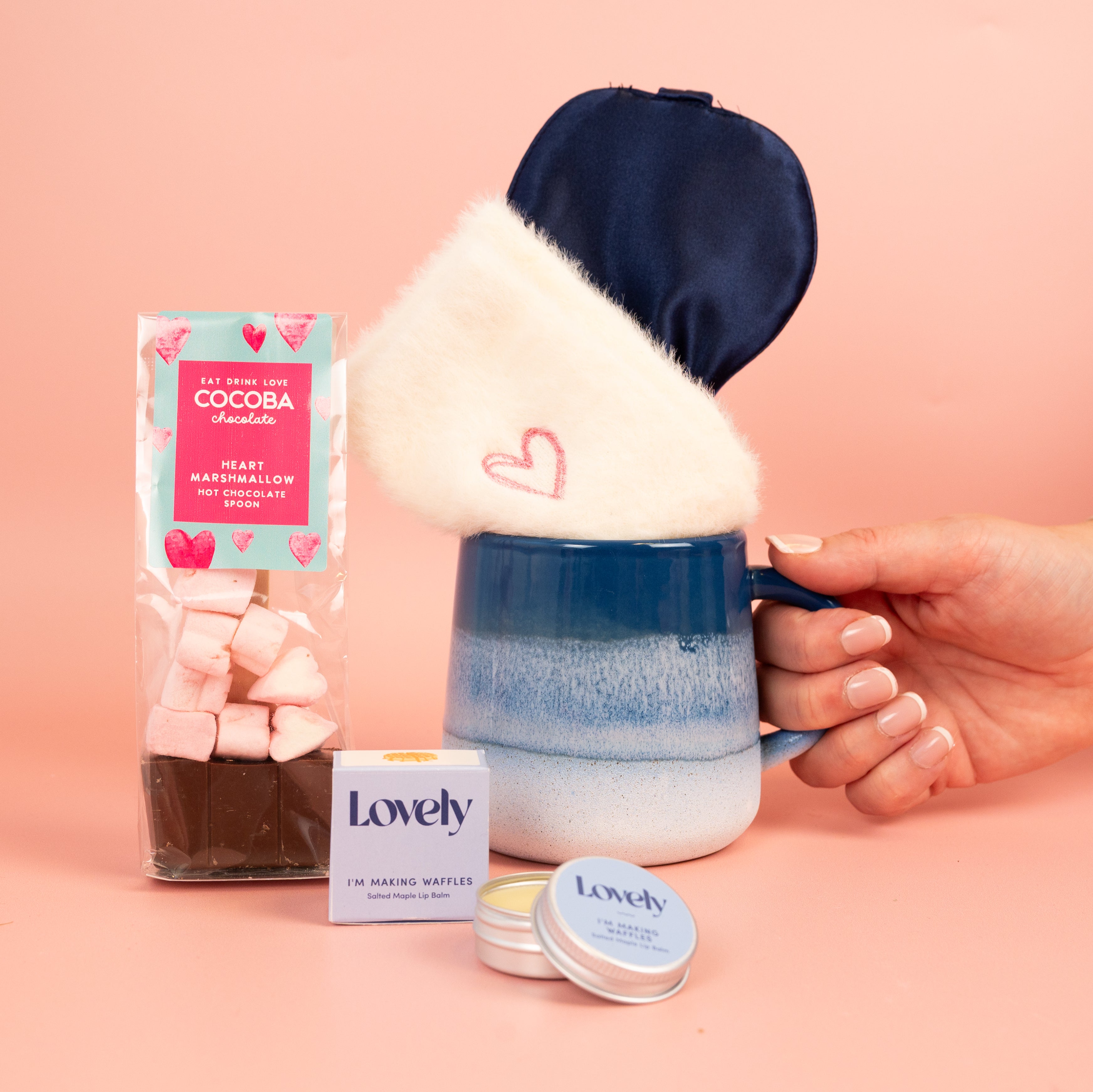 Inside, your recipient will discover a selection of soothing, soft, and delightfully uplifting goodies chosen to create a sense of calm and relaxation. From snug, comforting textures to gentle self-care treats and a charming mug for their favourite warm drink, each element is selected to encourage a little pause in the day. A handwritten card is included to add a personal, heartfelt touch - simply let us know your message and we’ll pen it with care.