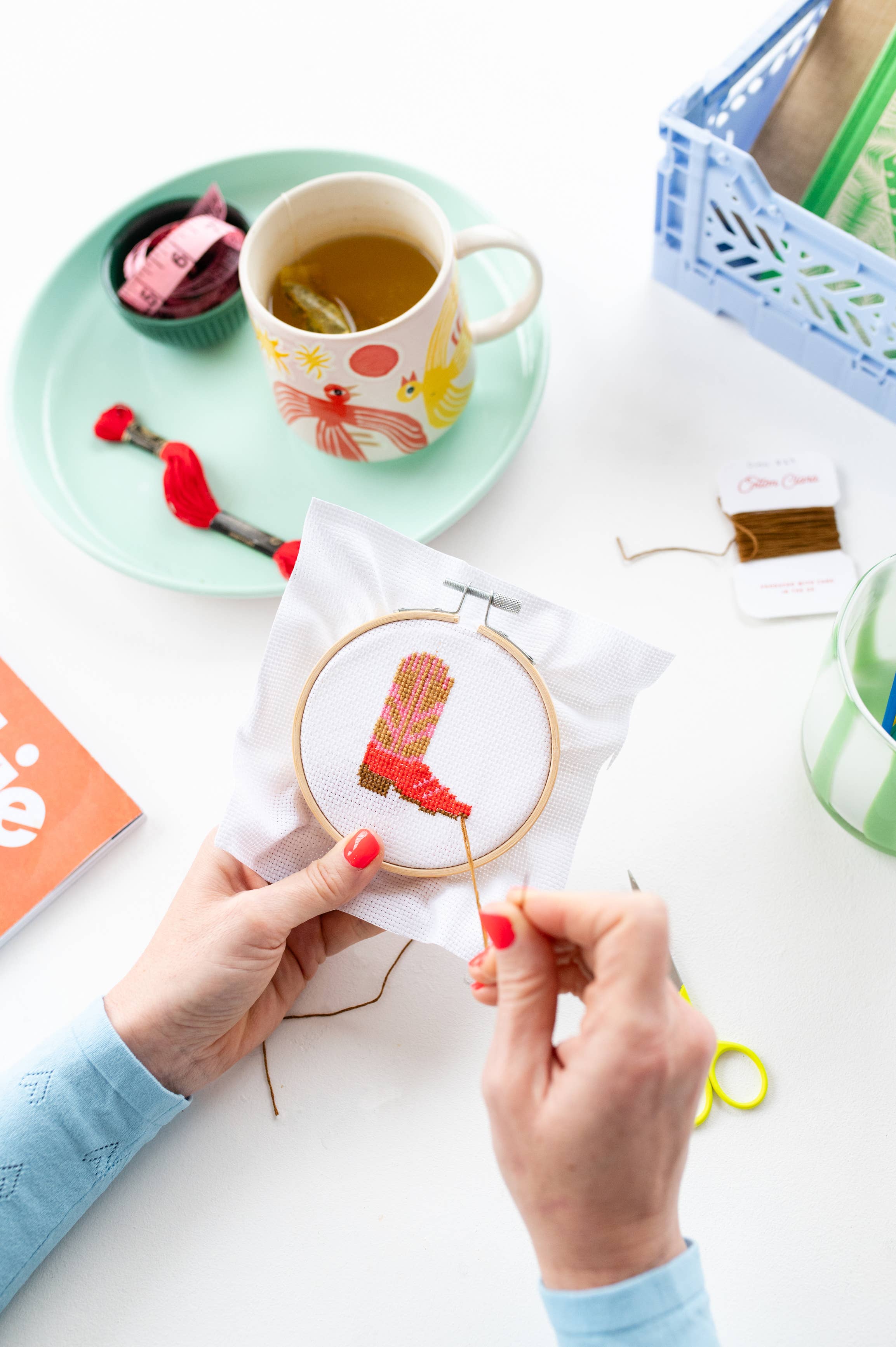 Bring a touch of Western charm to your home with our Cowboy Boot Cross Stitch Kit. Perfectly suited for beginners and experienced crafters alike, this kit lets you create a playful, modern cowboy boot design on coloured aida fabric. Its bold, contemporary style adds a fun pop to any room and makes a thoughtful gift for anyone who loves Americana or unique home décor.
