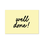 Celebrate achievements with our cheerful Well Done postcard! Featuring a bright yellow background and playful cursive lettering, this postcard is the perfect way to recognise someone’s hard work and success.