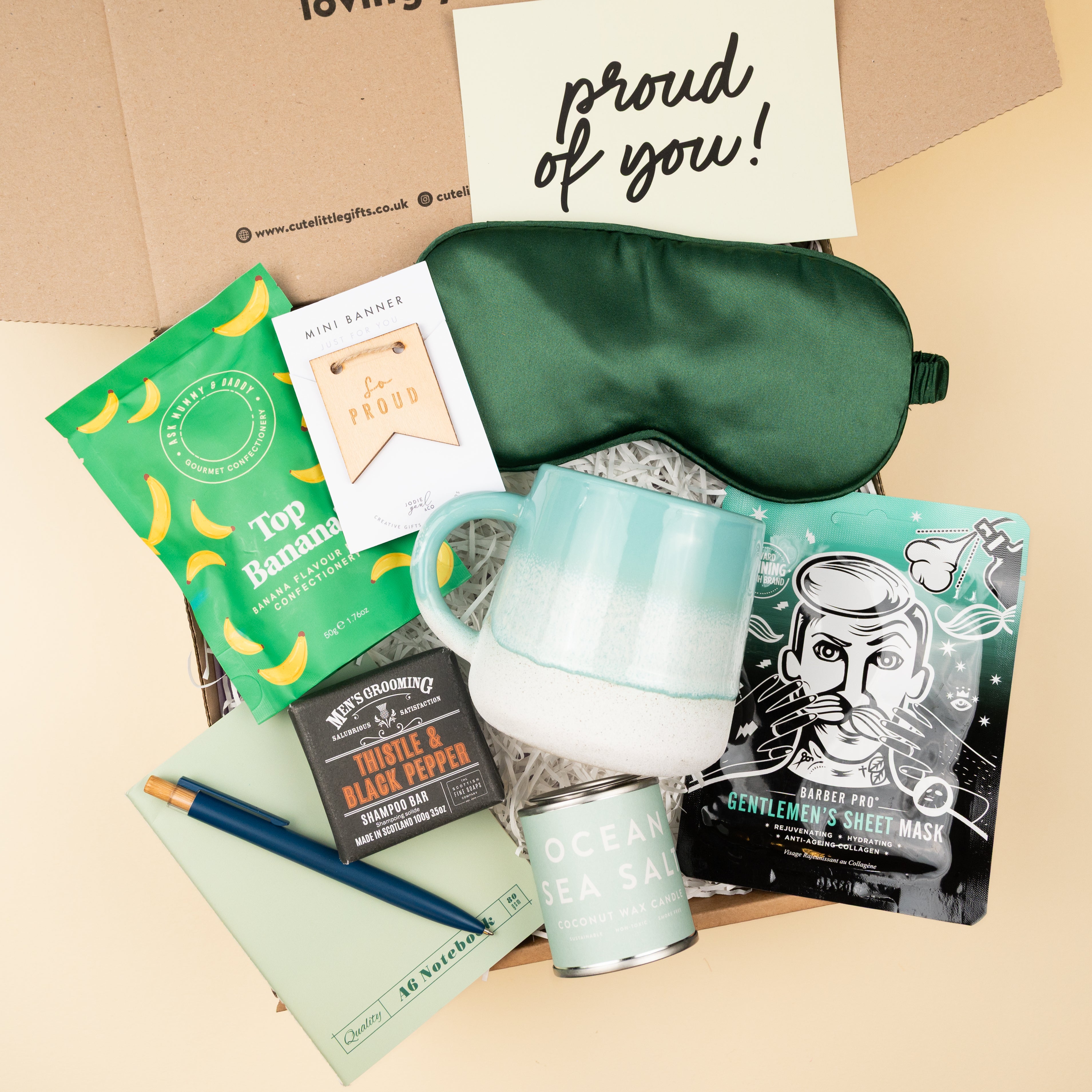 Celebrate someone special with the Proud Of You Parcel Gift Box | For Him, a thoughtful way to let him know just how much he’s appreciated. Every box is carefully curated to create a moment of joy, calm, and encouragement, arriving ready to brighten his day with a personal, handwritten message.