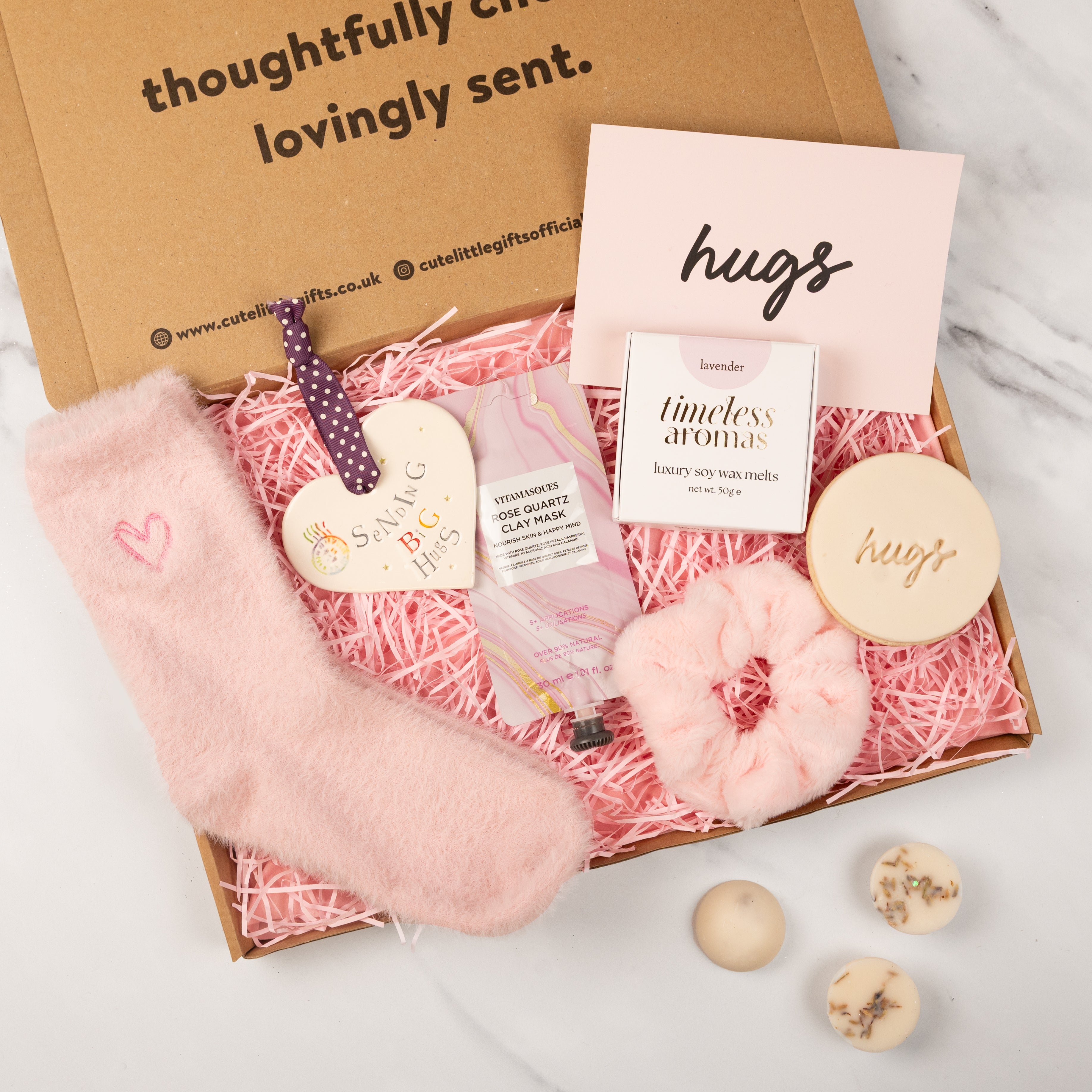 Inside, your recipient will discover a selection of soothing treats and soft, comforting touches chosen to promote relaxation and brighten their day. From gentle pampering essentials to sweet sentiments they can keep, every element has been selected to encourage calm, self-care and a feeling of being truly cherished.