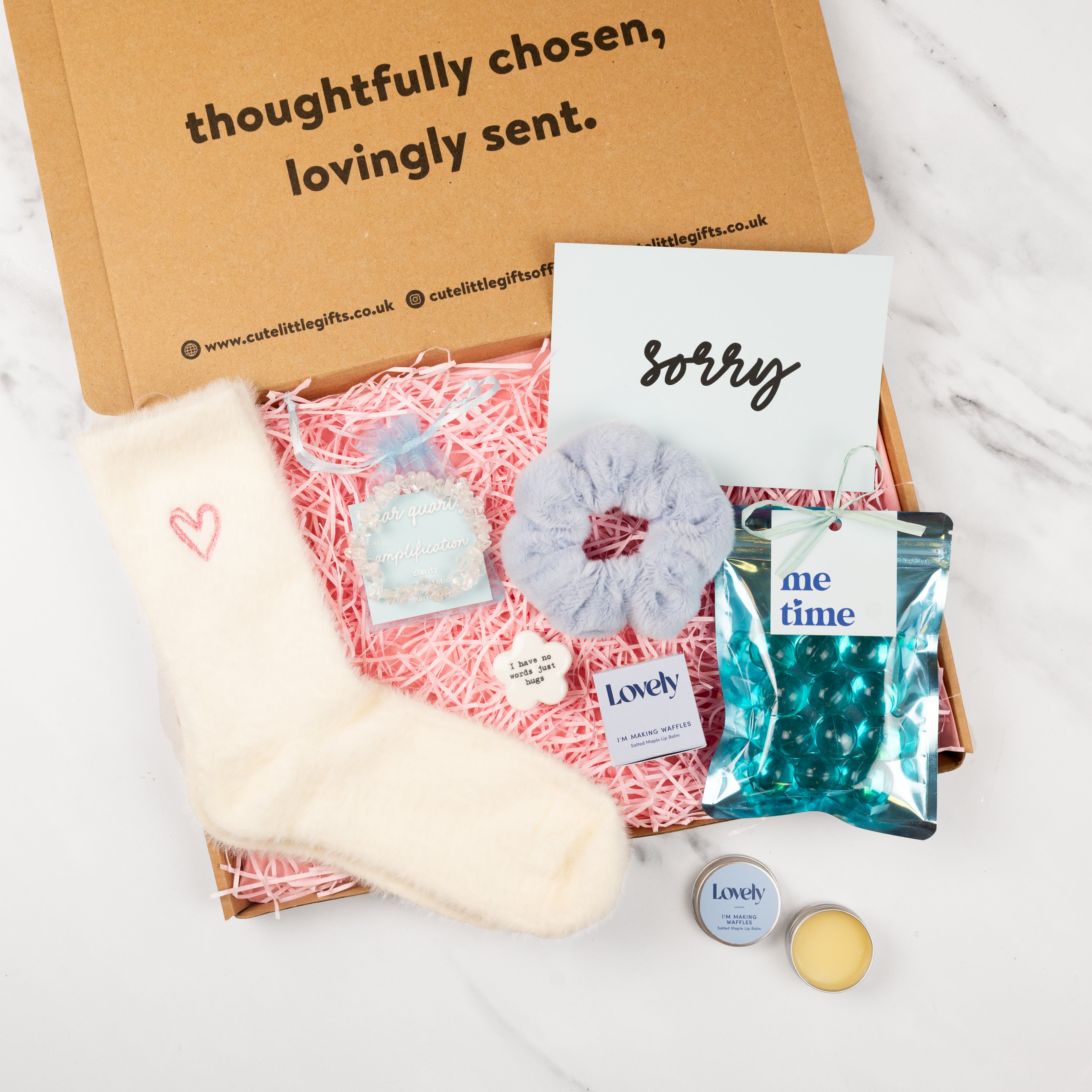 Show your heartfelt apologies with our 'Sympathy' collection, designed to send love and comfort when words just aren’t enough. These carefully curated letterbox gifts are perfect for sending a thoughtful message to someone you care about, when you can't be there in person. Each box is filled with delightful surprises that are sure to lift their spirits and remind them how much they mean to you.